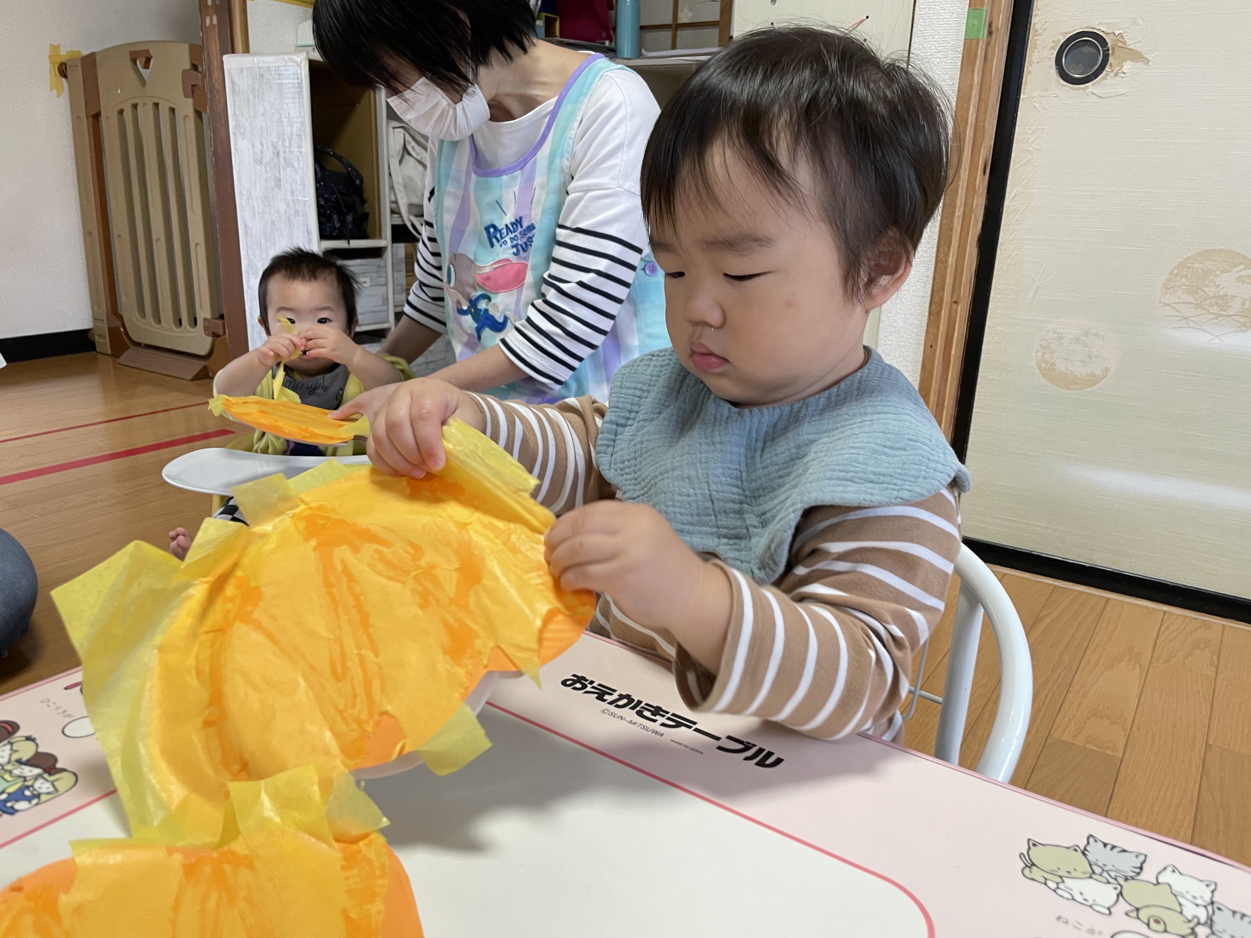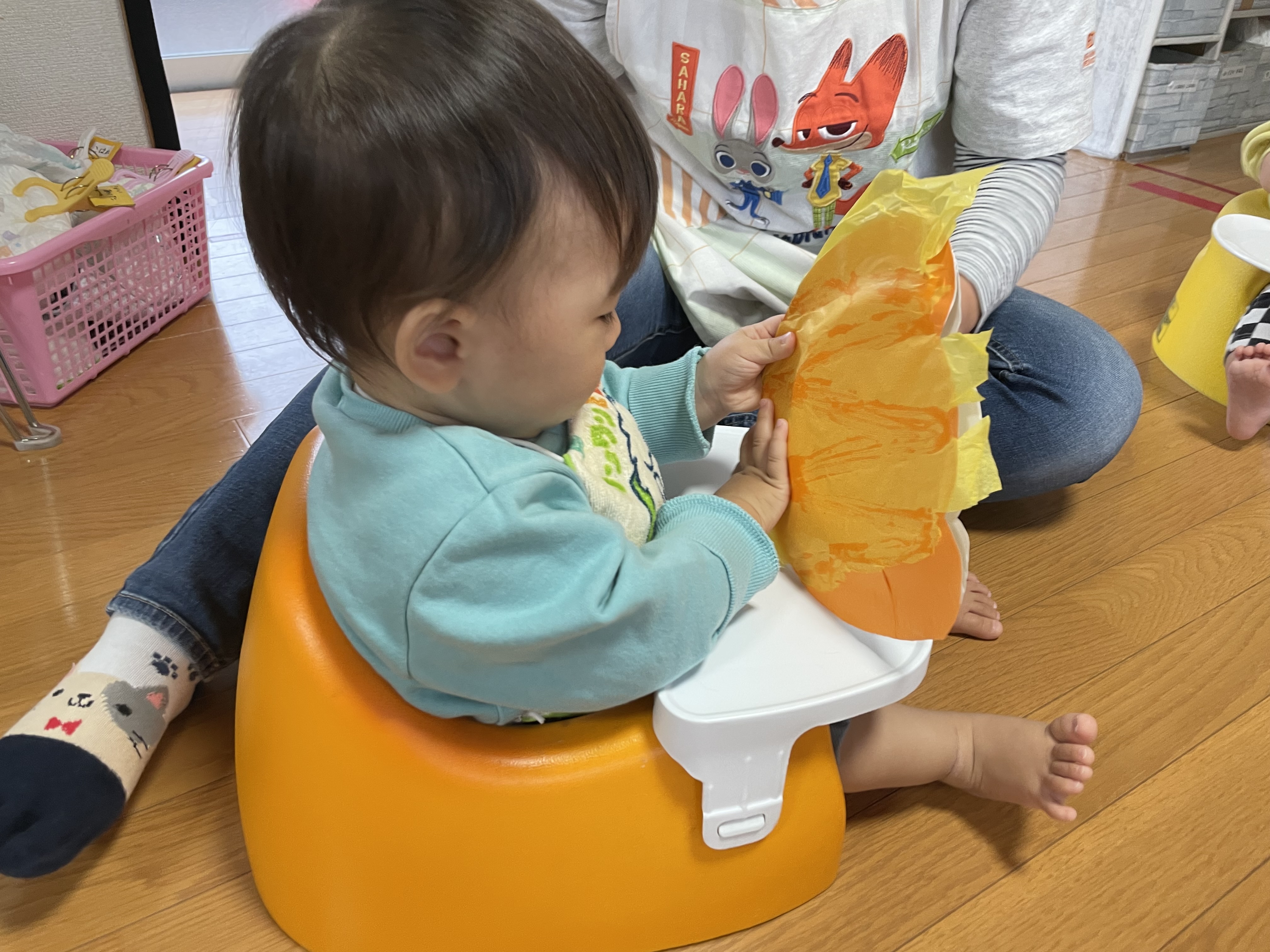 ちいさな手でシールを掴むのはなかなかに大変💦