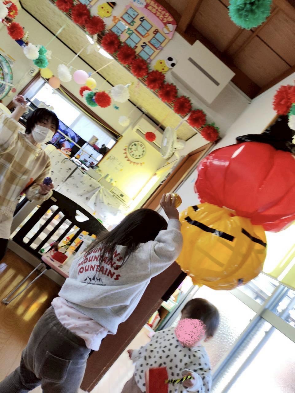 子どもも保育スタッフも大きな掛け声で豆を投げました!!