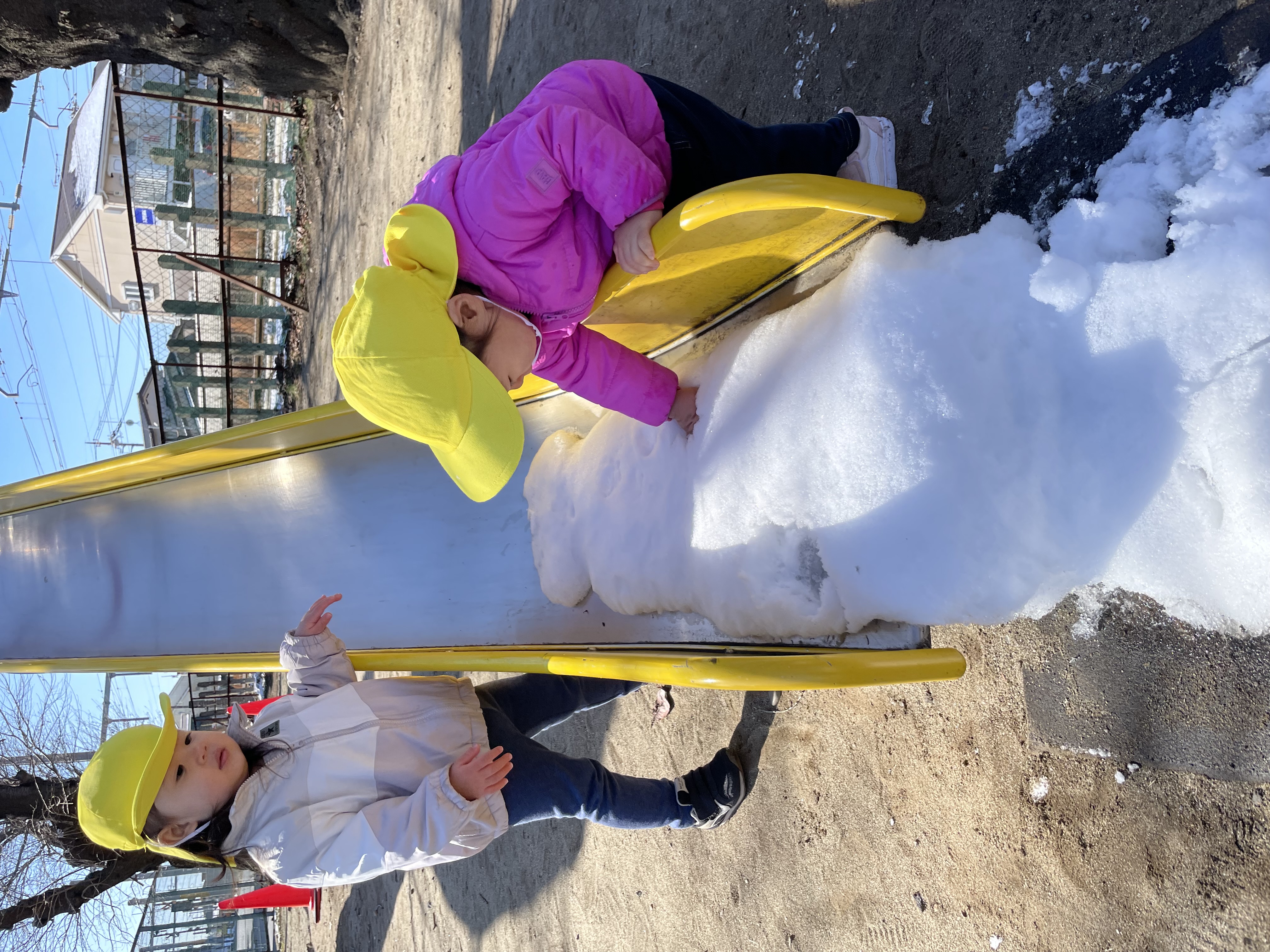 滑り台の下にも積もっていてびっくり⁉️